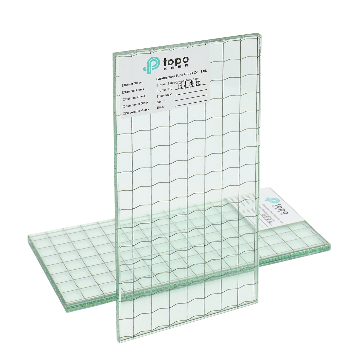 TopoGlass 夹丝玻璃有 5 毫米、6 毫米和 7 毫米等厚度可供选择,尺寸和表面处理可定制,支持进一步加工,包括切割、边缘抛光、层压、钻孔和陶瓷印刷。它可以与层压或绝缘结构相结合,以满足更高的安全和性能要求。